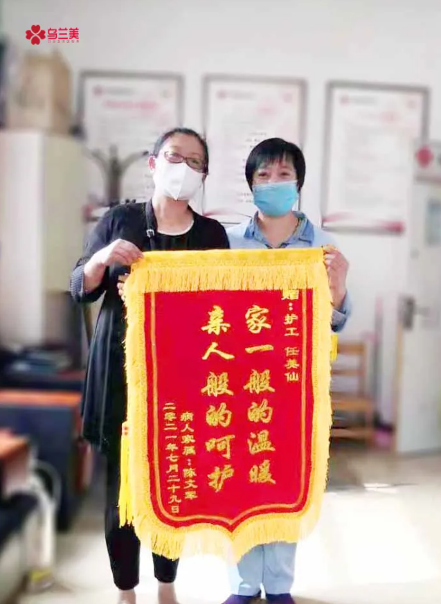 “我就是一個(gè)普通的農(nóng)民,沒有什么特殊的經(jīng)歷,但自從做了護(hù)工之后對我生活確實(shí)有很大的變化——增加了家庭經(jīng)濟(jì)收入來源。通過將近一年在醫(yī)院陪護(hù)病人的經(jīng)歷,讓我見識到了生命的堅(jiān)強(qiáng)和脆弱,也讓我認(rèn)識到生命的珍貴!”獲得錦旗的她略顯激動(dòng)的說:“感謝烏蘭美健康集團(tuán)為我們這些沒有一技之長的人提供就業(yè)平臺,也感謝所有在工作中幫助過我的人?,F(xiàn)在,我可以將所學(xué)到的知識幫助到更多需要幫助的人。”